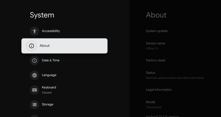 Miután a Beállítások képernyőn vagy, lépj a „Rendszer”, majd a „Névjegy” menüre.